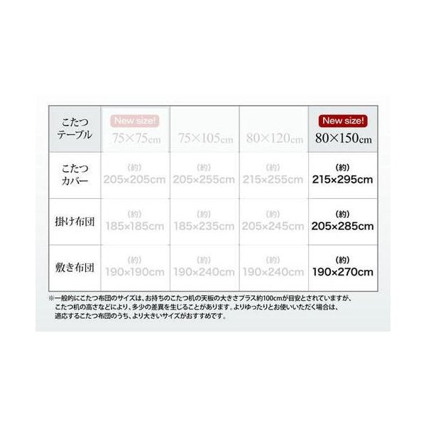 ※ご利用可能なこたつ机天板サイズ:80~90 150~180cm