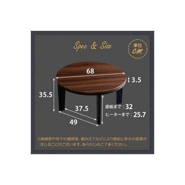 カジュアルこたつ ヴィンテージタイプ 石英管ヒーター付 68cm幅 丸型 テーブル本体単品【】