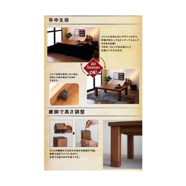 kag-33645 こたつテーブル こたつ テーブル 炬燵 電気こたつ おしゃれ 北欧 安い ローテーブル 木製 アジアン ( こたつ机 長方形 (75×105)