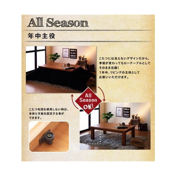 天然木パイン材 男前ヴィンテージデザインこたつテーブル