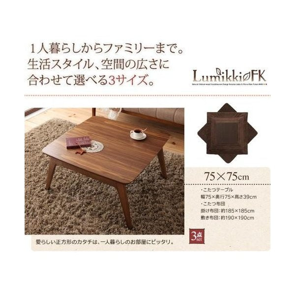 kag-33661 こたつ 本体 ローテーブル センターテーブル おしゃれ ( 正方形 75×75) コンパクト ミニ 小さい 一人用 約 高さ40 ウォールナット 北欧 アンティーク 角丸