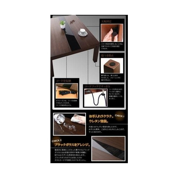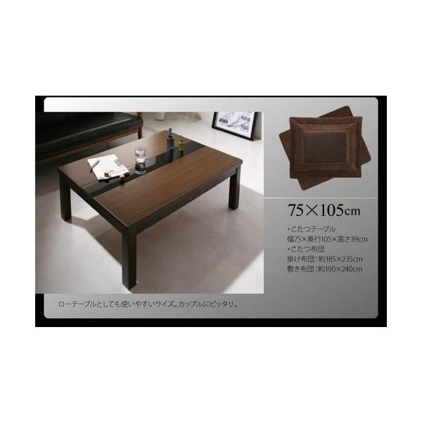 kag-33671 こたつ 本体 ローテーブル センターテーブル おしゃれ リビング ( 机 長方形 75×105) 4人 大きい 約 高さ40 ガラス ウォールナット 高級 シンプル モダン