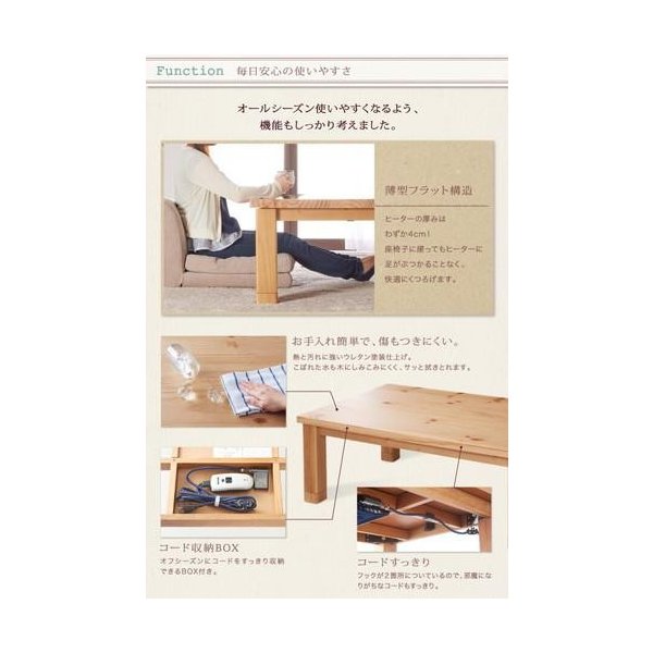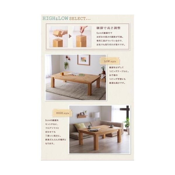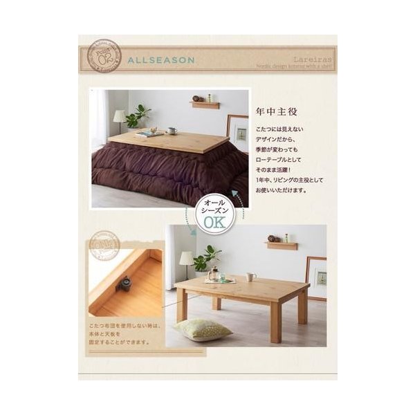 天然木パイン材・北欧デザインこたつテーブル