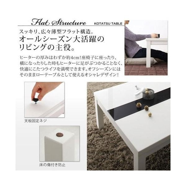 kag-33752 こたつ 本体 ローテーブル センターテーブル おしゃれ リビング ちゃぶ台 ( 机 鏡面 4尺 長方形 80×120) 4人 大きい 約 高さ40 ガラス 高級 シンプル モダン
