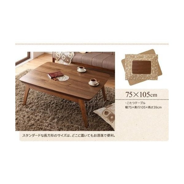 kag-33763 こたつ 本体 ローテーブル センターテーブル おしゃれ ( 長方形 75×105) 4人 約 高さ40 ウォールナット 北欧 モダン レトロ アンティーク 可愛い 姫 角丸