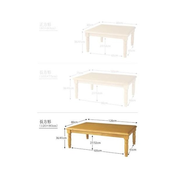 kag-34008 こたつ 本体 ローテーブル センターテーブル おしゃれ ( 4尺 長方形 80×120) 4人 大きい 約 高さ40 高さ調節 継ぎ足 ハイタイプ アンティーク 可愛い 姫