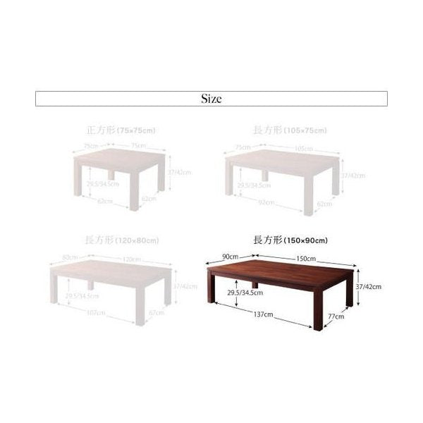 kag-34012 こたつ 本体 ローテーブル センターテーブル おしゃれ ( 5尺 長方形 90×150) 6人 大人数 約 高さ40 高さ調節 継足 ハイタイプ アンティーク ヴィンテージ