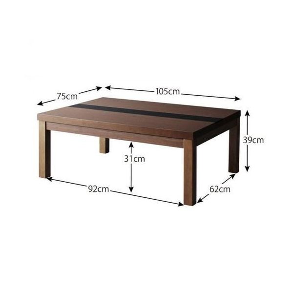 kag-34230 こたつ 本体 ローテーブル センターテーブル おしゃれ リビング ( 机 長方形 75×105) 4人 大きい 約 高さ40 ガラス ウォールナット 高級 シンプル モダン