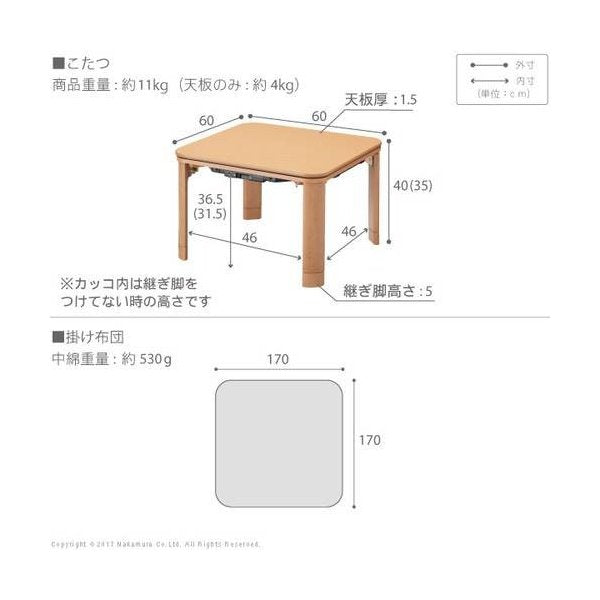 kag-36102 こたつ 掛布団 セット こたつテーブル 折りたたみ 正方形 調節 高さ 調整 昇降 継ぎ足 フラットヒーター 60×60 センターテーブル ローテーブル こたつ布団 北欧