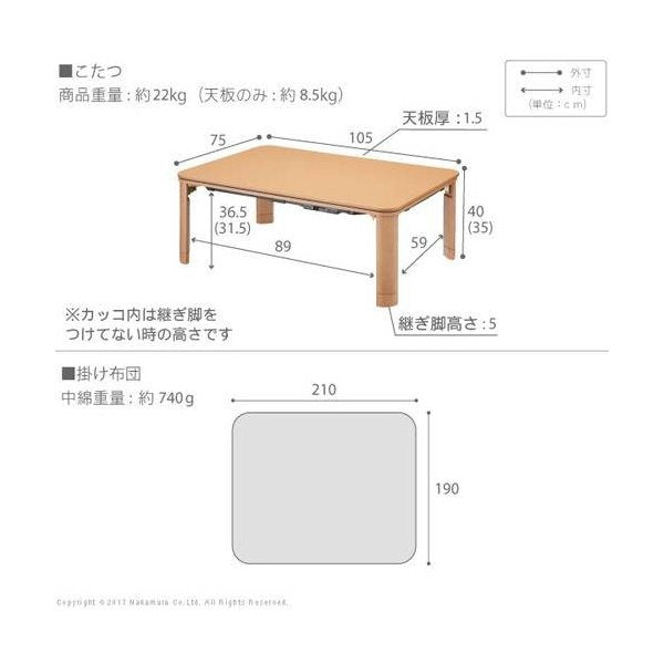 kag-36105 こたつ 掛布団 セット こたつテーブル 折りたたみ 長方形 調節 高さ調整 昇降 継ぎ足 フラットヒーター 105×75 センターテーブル ローテーブル こたつ布団 北欧