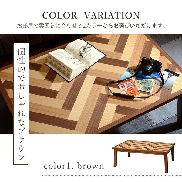 へリンボーン柄の天板がお洒落なこたつテーブル。