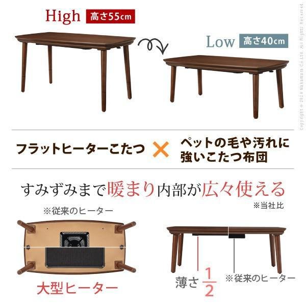 kag-37863 こたつ布団 セット ローテーブル 北欧 デスク 机 長方形 ソファー フラットヒーター 90×50 ペット 犬 猫 布団 継ぎ脚 高さ調整 ウォールナット テレワーク 在宅