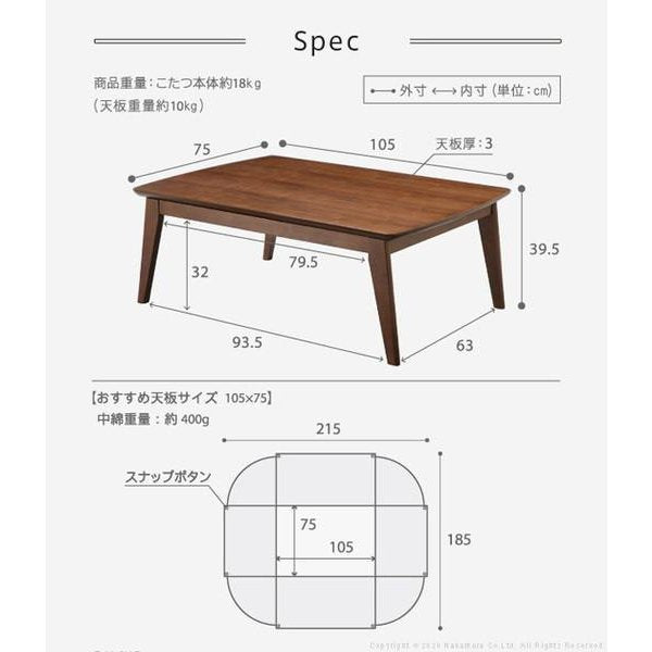 kag-37867 こたつ布団 セット ローテーブル 北欧 デスク 机 長方形 105×75 綿 コットン フランネル 布団 ソファ ロー 天然木 ウォールナット オーク テレワーク 在宅