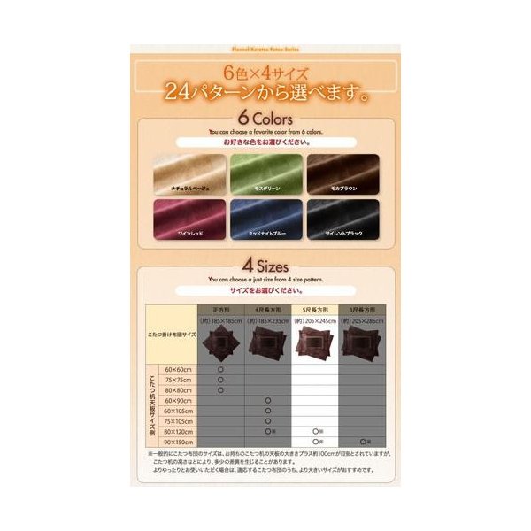 適応こたつ天板サイズ::60 90cm/60 105cm/75 105cm/80 120cm