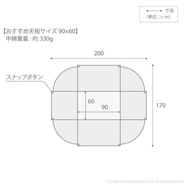 kag-37833 こたつ布団 掛け布団 掛け かけ布団 こたつ 布団 省スペース 正方形 綿 コットン フランネル 90×60天板用 200×170 撥水 洗える あったか 炬燵 ふかふか