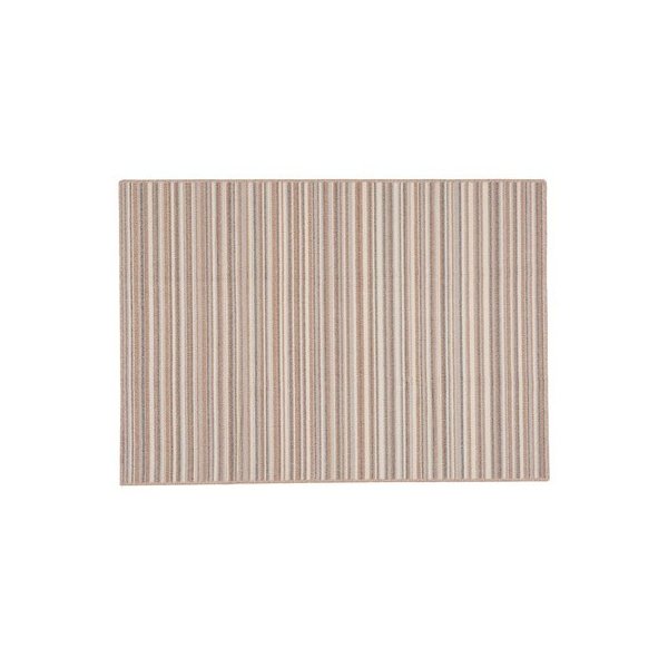 毛足が短いので掃除機もかけやすく、年中使える素材感です。シンプルなブラウンベージュのストライプで、ナチュラルやモダンなインテリアにぴったりです。