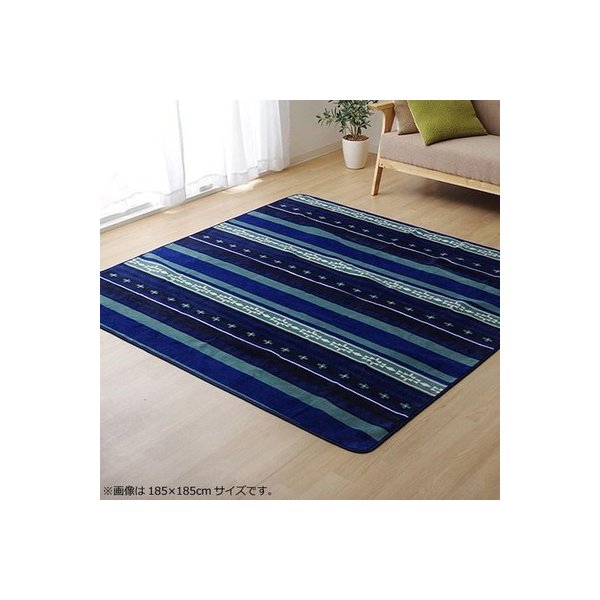 abt-6516 ラグ カーペット おしゃれ ラグマット 絨毯 キリム柄 ネイティブ マット 厚手 夏 オールシーズン 北欧 安い フランネル 床暖房対応 200×300 6畳 ブルー