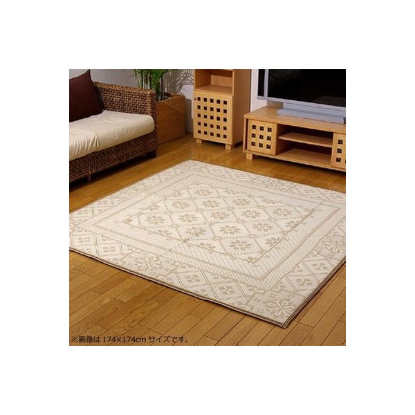 abt-6829 ラグ カーペット おしゃれ ラグマット 絨毯 ペルシャ ダイニングラグ マット 厚手 北欧 安い 夏 オールシーズン 174×174 江戸間 2畳 アイボリー