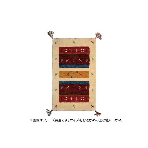 手機織機で丁寧に織り上げ、使用時間の経過とともに味わいが深まる「ギャッベ」。とても細くやわらかくやさしいタッチ感が魅力のウールを100%使用。冬はもちろん夏にも適しておりオールシーズンご使用いただけます。