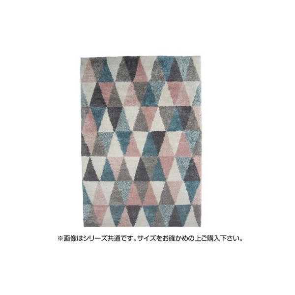 モダンなトライアングル柄のベルギー製ウィルトンラグ。毛足は約35mmで指先が埋まるほど長く、ぎゅっと詰まったパイル密度のためふわふわで極上の気持ちよさです。