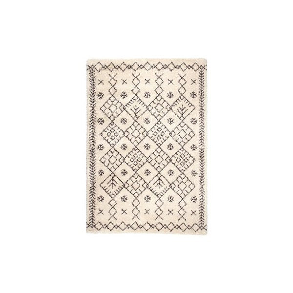 ギャッベ風デザインを表現したウィルトン長毛ラグ。民族調のあたたかみのある雰囲気が、空間をやさしく包み込みます。毛足は約35mmで指先が埋まるほど長く、ぎゅっと詰まったパイル密度なので、ふわふわで極上の気持ちよさです。ヒートセット加工を施すことにより、ウールに似たタッチ感やへたりにくさをプラスしました。