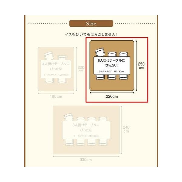 kag-32823 ダイニングラグ カーペット 撥水 拭ける こたつ敷布団 絨毯 厚手 オールシーズン マット 夏 220×250 4畳半 大きい 防ダニ 抗菌 床暖房 北欧 モダン デザイン