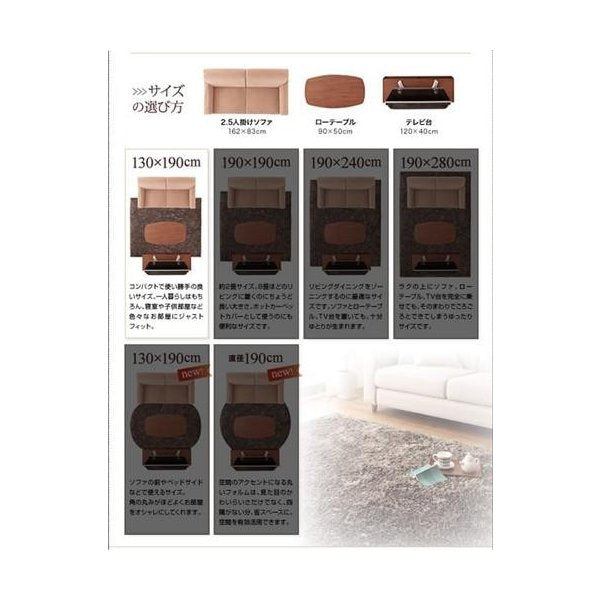 ※ホットカーペットまたは床暖房のカバーとして使用される際は、ホットカーペットまたは床暖房本体の注意事項に従ってご使用ください。また、ホットカーペット、床暖房をご使用時は、電源をこまめに切りながら連続して長時間ご使用にならないように注意してください。