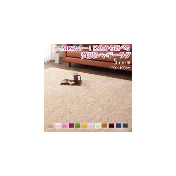 kag-33002 ラグ カーペット 洗える こたつ敷き 絨毯 厚手 低反発 ウレタン 防音 マット 極厚 正方形 190×190 3畳 滑り止め シャギー ミックス 北欧 モダン デザイン