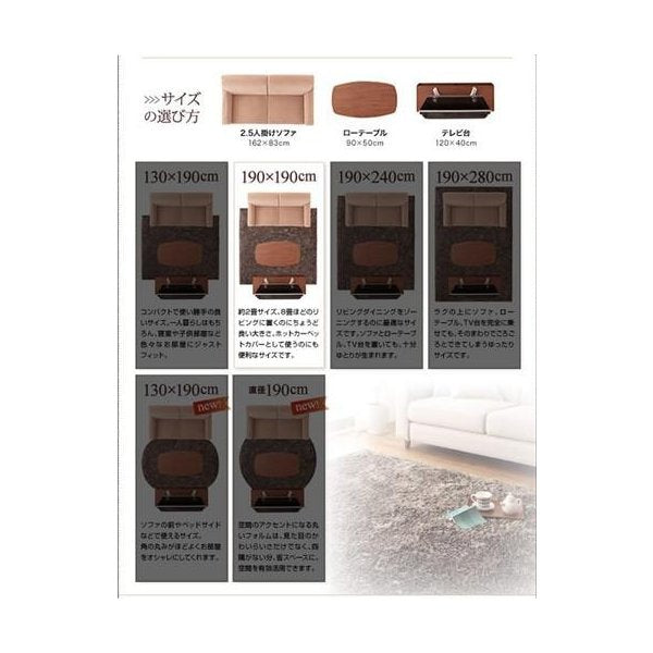 ※ホットカーペットまたは床暖房のカバーとして使用される際は、ホットカーペットまたは床暖房本体の注意事項に従ってご使用ください。また、ホットカーペット、床暖房をご使用時は、電源をこまめに切りながら連続して長時間ご使用にならないように注意してください。