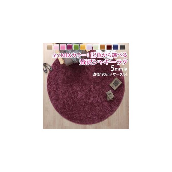 kag-33005 ラグ カーペット 丸い 丸型 洗える こたつ敷き 絨毯 厚手 低反発 ウレタン 防音 マット 極厚 幅190 2畳 滑り止め シャギー ミックス 北欧 モダン デザイン