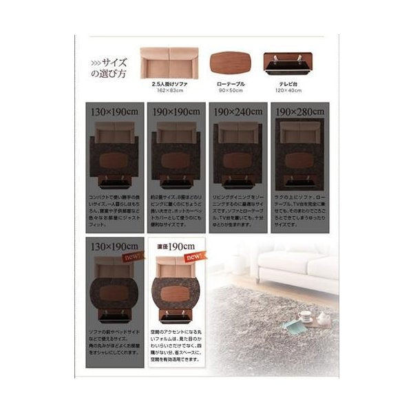 ※ホットカーペットまたは床暖房のカバーとして使用される際は、ホットカーペットまたは床暖房本体の注意事項に従ってご使用ください。また、ホットカーペット、床暖房をご使用時は、電源をこまめに切りながら連続して長時間ご使用にならないように注意してください。
