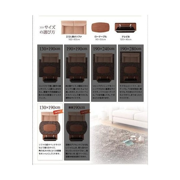※ホットカーペットまたは床暖房のカバーとして使用される際は、ホットカーペットまたは床暖房本体の注意事項に従ってご使用ください。また、ホットカーペット、床暖房をご使用時は、電源をこまめに切りながら連続して長時間ご使用にならないように注意してください。