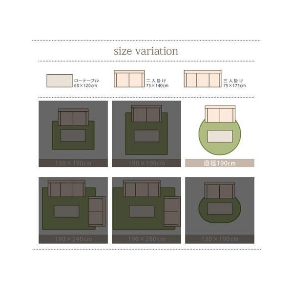 kag-33019 ラグ カーペット 丸い 丸型 こたつ敷き 絨毯 厚手 低反発 ウレタン 防音 マット 極厚 ふかふか 幅190 2畳 北欧 モダン デザイン かわいい 子供部屋 もこもこ