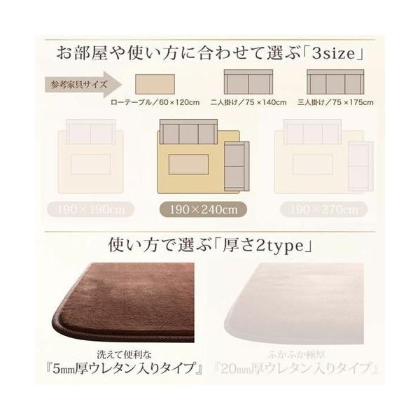 極厚20mm厚ウレタン入りタイプ 190 270cm:(約)190 270cm