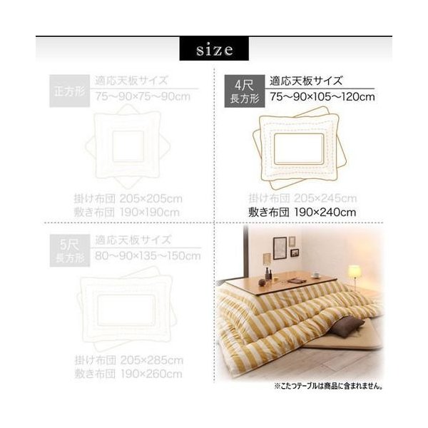 ※本商品の敷き布団をホットカーペットまたは床暖房のカバーとして使用される際は、ホットカーペットまたは床暖房本体の注意事項に従ってご使用ください。