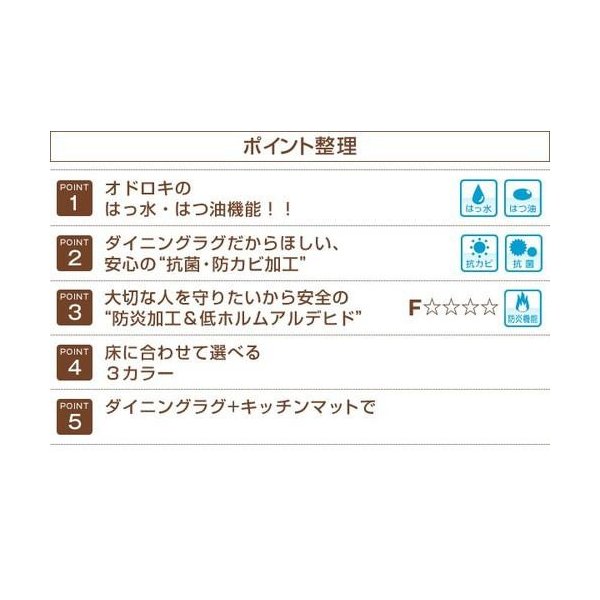 【商品名】はっ水・はつ油・抗カビ・抗菌・防炎機能付きフローリング調ダイニングラグ&キッチンマット