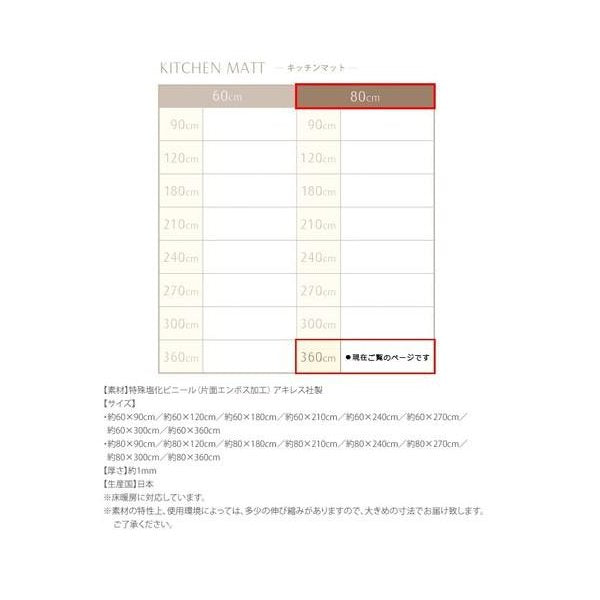 kag-32932 キッチンマット 拭ける 防水 フローリング 夏 涼しい 滑り止め 台所 ロング 撥水 長い 滑らない 幅広 ( 80×360 ) 床暖房 モダン 薄手 ビニール 吸着 ずれない
