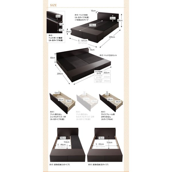 ・ABタイプ共通:シングル101cm、セミダブル121cm