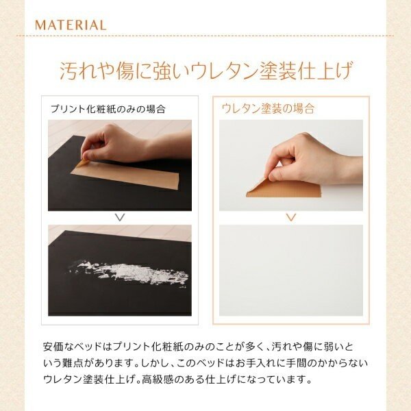 ※ベッドのフレームはスプリングマットレス使用時の基準で強度計算されております。 そのため、床板に直接布団などを敷いてご利用になりますと破損の原因となる場合があり、大変危険です。床板の上に必ずスプリングマットレスを敷いてご利用ください。