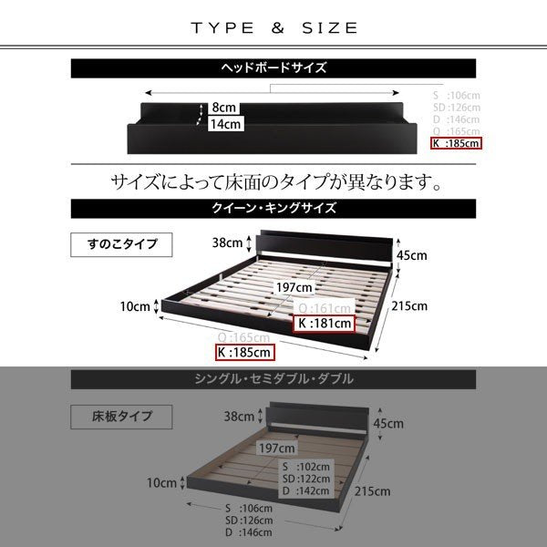 キングベッド 家族 ファミリー 親子 ワイド マットレス付き ローベッド ロータイプ フロア 低床 低い 宮付き ヘッドボード 枕元 棚 ラック 携帯置き ティッシュ置き メガネ置き リモコン 頭上 収納 コンセント ゲーム ケーブル スマホ 充電 電気 デザイナーズ ホテル モダン 高級 メンズ