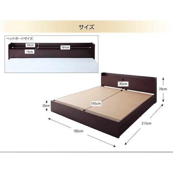 kag-42187 キングベッド 家族 ファミリー 親子 ワイド マットレス付き チェスト ベッド下 収納 引き出し 大容量 宮 棚 携帯 リモコン コンセント スマホ 充電 ヴィンテージ