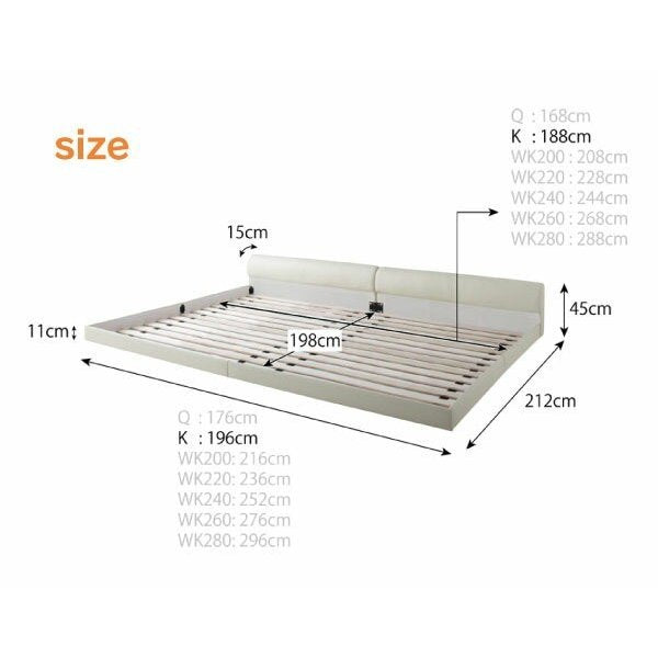 kag-43208 連結ベッド キング ワイド 3人 4人 家族 つなげる 2台 連結 分割 ファミリー マットレス付 ロー 低い 背もたれ クッション レザー ゴージャス ゴシック