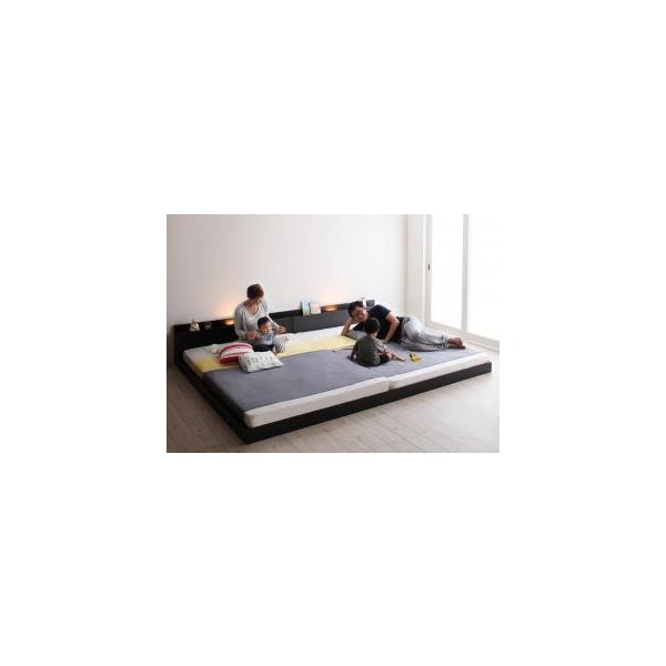 kag-43341 連結ベッド キング ワイド 3人 4人 家族 つなげる 2台 分割 ファミリー マットレス付き ローベッド 低い 宮 棚 携帯 収納 照明 ライト コンセント スマホ 充電
