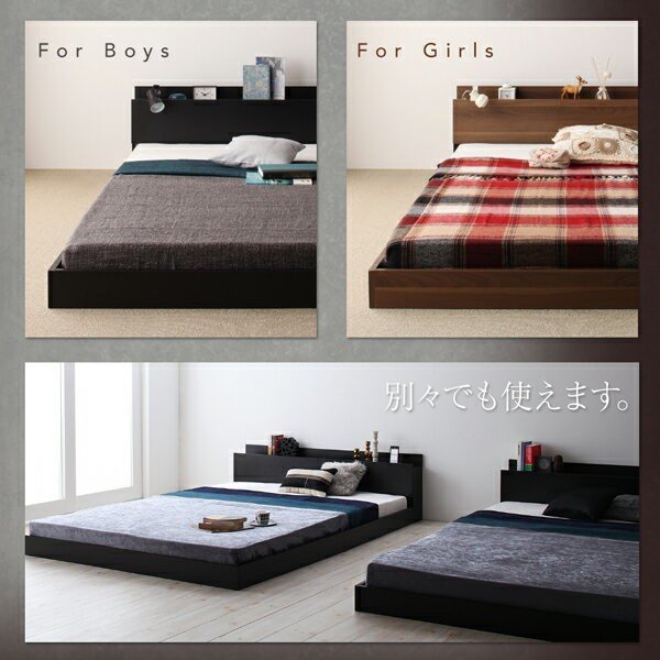 kag-43363 連結ベッド キング ワイド 3人 4人 家族 つなげる 2台 分割 ファミリー マットレス付き ローベッド 低い 宮 棚 携帯 収納 照明 ライト コンセント スマホ 充電