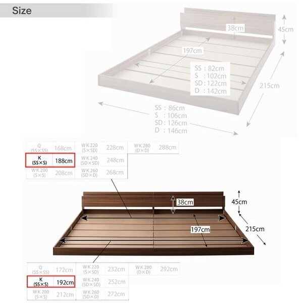 キング(SSxS):(約)幅192x長さ215x高さ45cm