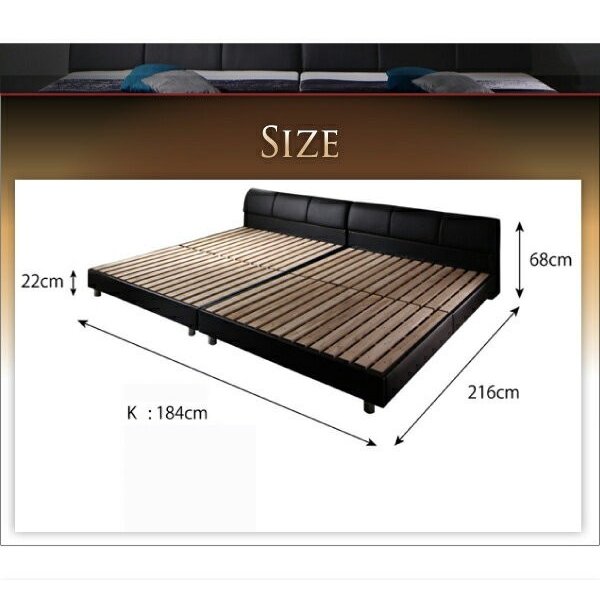 kag-43446 連結ベッド キング ワイド 3人 4人 家族 つなげる 2台 分割 ファミリー マットレス付 ロー 低い 背もたれ クッション 布団可 すのこ 通気性 カビ レザー 脚 足