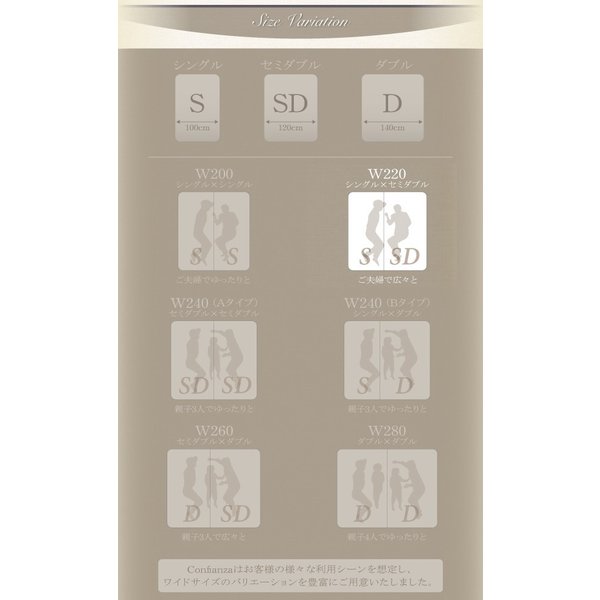 セミダブル:(約)幅120x長さ195x高さ17cm