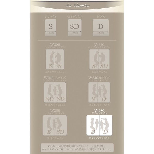 連結ベッド 幅280 キング ワイド 2人 3人 4人 家族 つなげる 2台 連結 分割 ファミリー 親子 マットレス付き ベッド下収納 収納付き 大容量 高い 床下収納スペース 全面収納 フラットヘッドボード 薄型 デザイナーズ ホテル モダン 高級 メンズ
