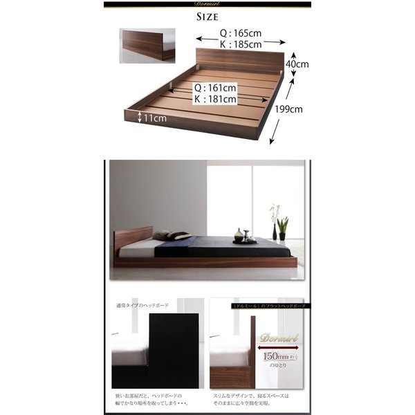 kag-44268 キングベッド 家族 ファミリー 親子 ワイド マットレス付き ローベッド ロータイプ フロア 低床 低い ヘッドボード 薄型 ヴィンテージ メンズ モダン レトロ