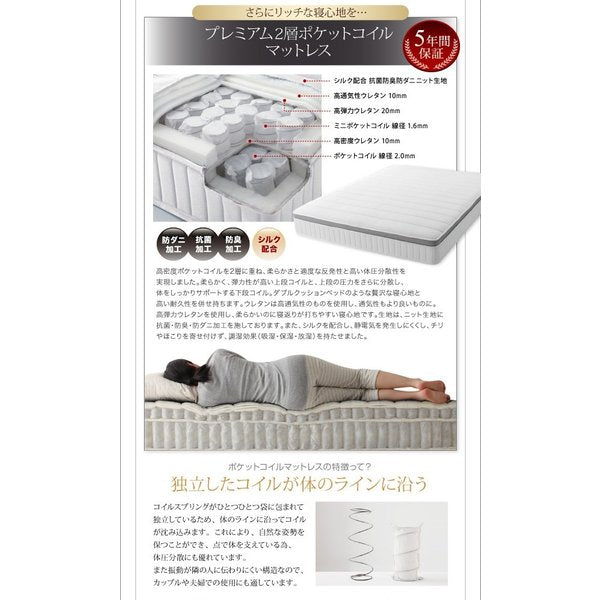 中材:マルチラススプリング(コイル数/Q:2700)、パームパッド、ウレタンフォーム、フェルト、不織布(防虫加工)